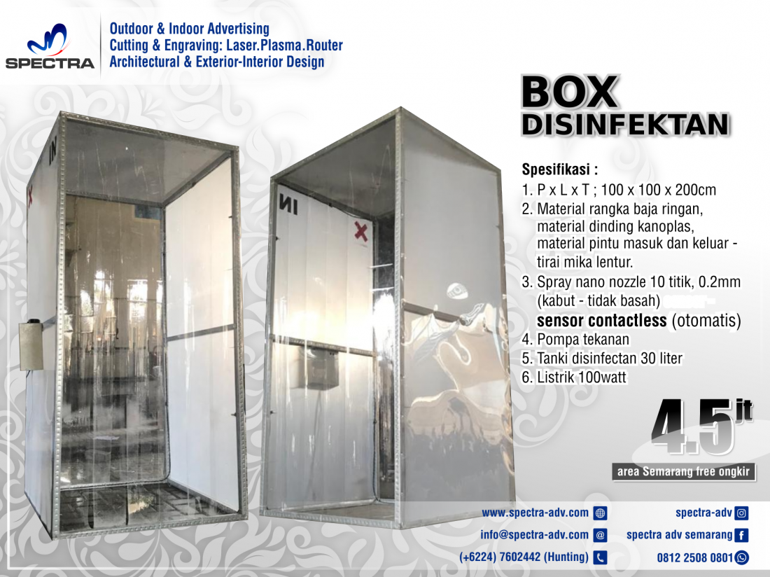Pada masa pandemik COVID 19 hal yang ditakuti adalah bertemu dengan orang asing atau kerabat yang tidak tahu kemana. Oleh karena itu kita bisa berikan solusi untuk mencegah dari penyebaran virus COVID ini. Kami ciptakan Box Disinfektan senilai Rp.4.500.000,-