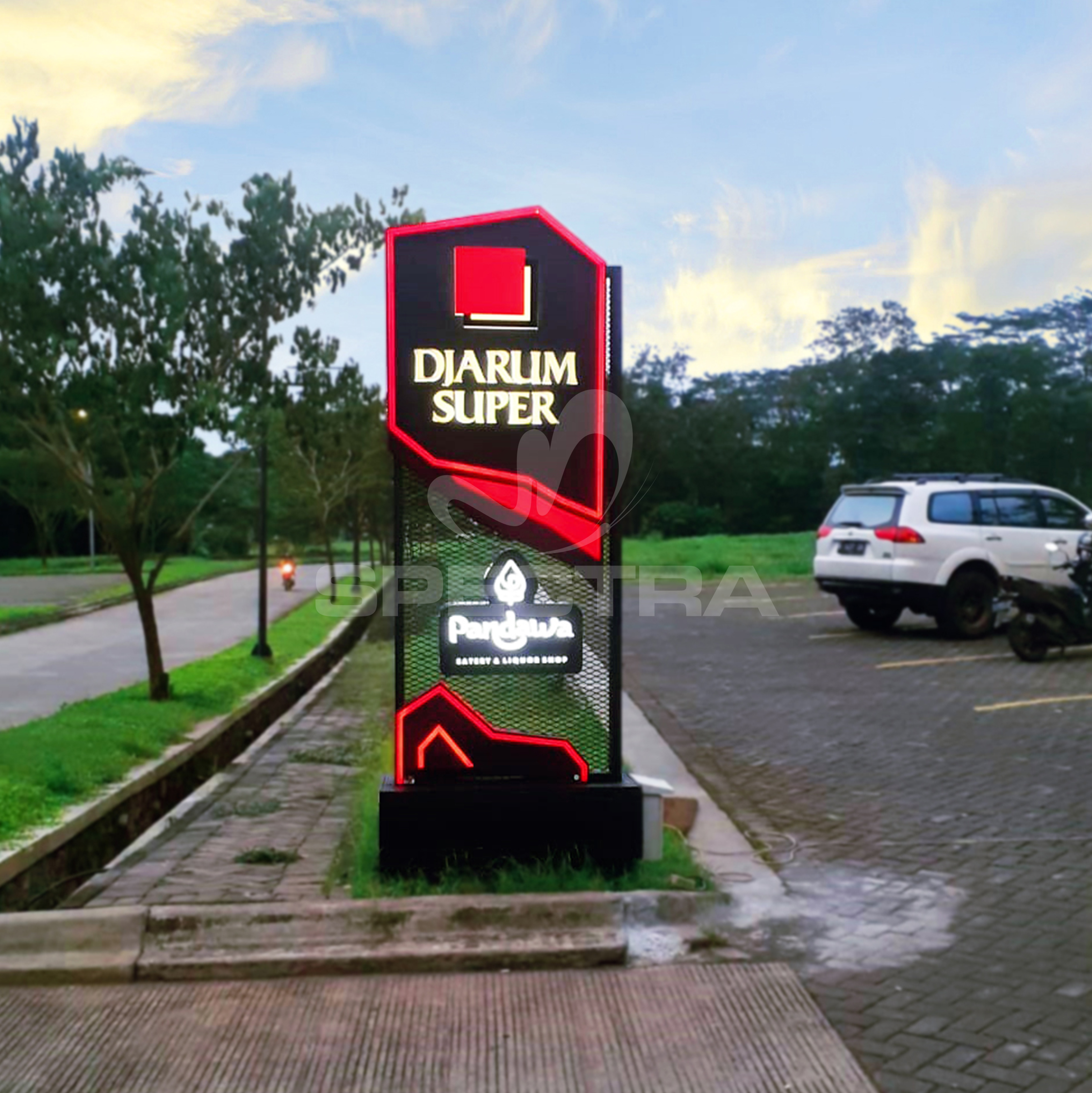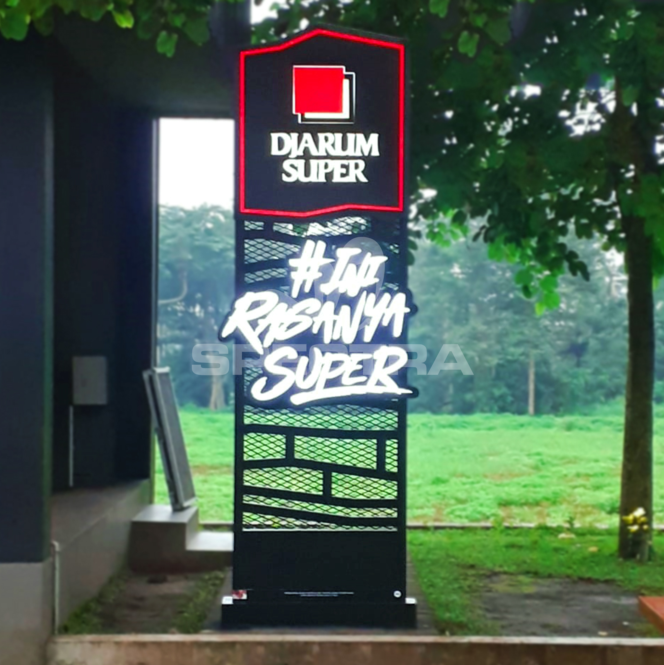 Hasil jadi pekerjaan tim spectra_adv untuk branding brand Djarum Super pada salah satu kafe ternama di Semarang yaitu Angkringan Pandawa BSB Semarang. Ada beberapa materi yang dikerjakan dalam project branding ini seperti 2 unit Totem outdoor, Wall Decor, dan Slim Lite.