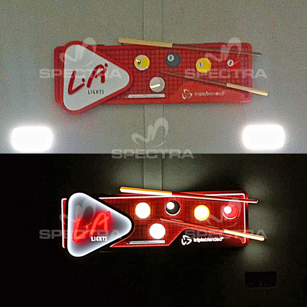 FINISH, Project yang telah dikerjakan oleh tim spectra_adv untuk branding LA Light di salah satu cafe & billiard yang ada di Rembang yaitu Zone Billiard. Ada beberapa materi custom yang dikerjakan dalam project branding ini, yaitu 1 unit Shopsign, 3 unit Walldecor, 1 unit sticker one way.