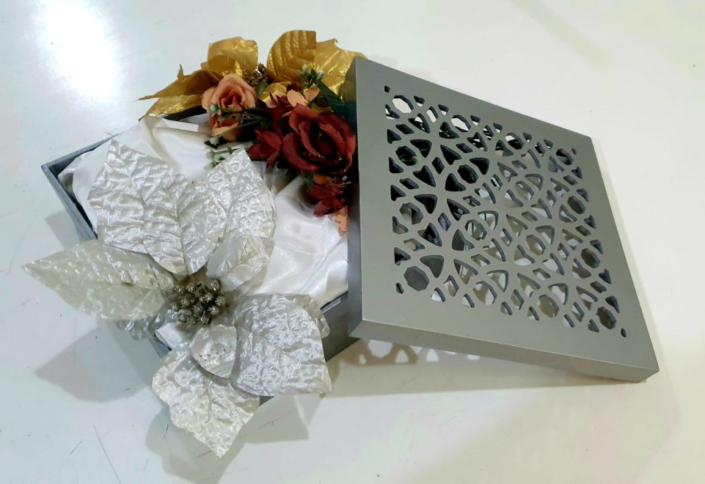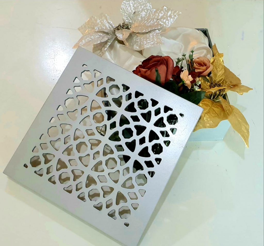 Pembuatan Box dengan bahan mdf 4mm finshing cat. Pembuatan box ini bisa digunakan untuk seserahan, parcel, dan lainya. dengan menambahkan ornamen cutting pada bagian tutup box membuat tampilan lebih bervariasi.