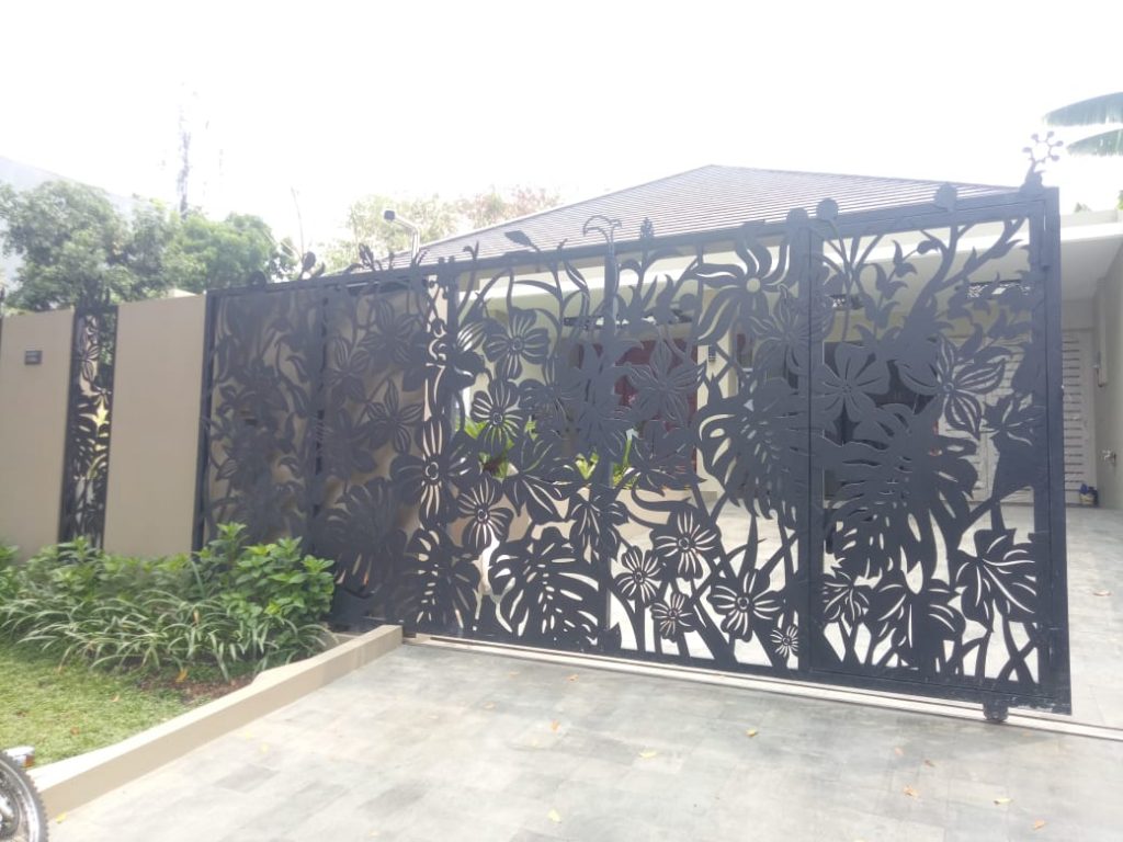 Berikut contoh pembuatan cutting plasma ornamen pagar rumah memakai bahan plat besi yang di cutting sesuai kebutuhan pemesanan, dengan finsihing cat hitam menghasilkan kesan elegan dan mewah serta membuat tampilan rumah ada semakin menarik.