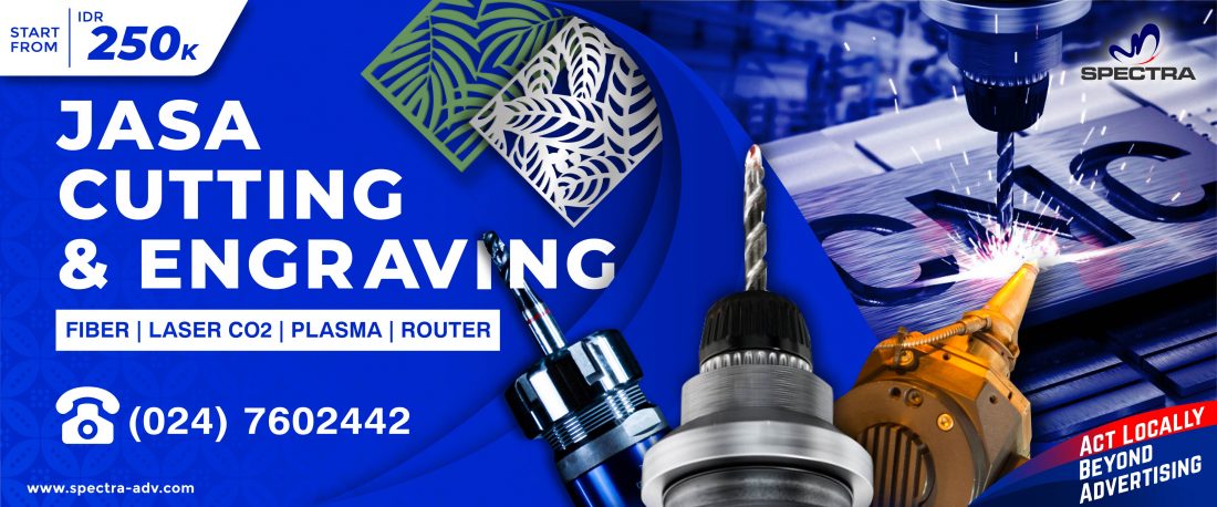 Yuk langsung mampir saja ke spectra_adv, kami siap melayani segala kebutuhanmu. Untuk kalian yang terutama tinggal di Semarang udah gak perlu bingung lagi jika butuh jasa cutting atau engraving untuk berbagai material seperti plat besi (Yzer), ACP, MDF, Akrilik, Stainless, Sticker Cutting, Batu atau Kayu, dll. Dengan harga mulai Rp. 250.000 / m2, kami siap melayani kebutuhan kalian dengan menyediakan beberapa jenis jasa cutting & engrave mulai dari: