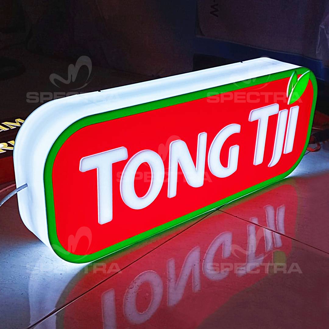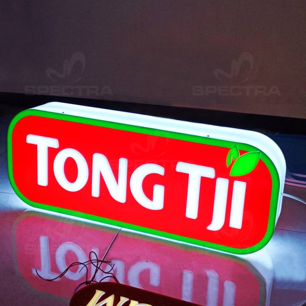 Pembuatan 2 set Neon Box oleh tim spectra_adv untuk brand Tong Tji dengan material full akrilik dengan finishing visual memakai sticker Oracal. Media Neon Box sendiri cocok dipakai untuk pemilik usaha yang ingin mempromosikan tempat bisnisnya agar mudah dikenali oleh banyak orang. Dengan desain berkonsep modern dilengkapi pencahayaan lampu LED yang terang, media ini akan memberi sentuhan elegan dan eksklusif pada tempat bisnis kalian.