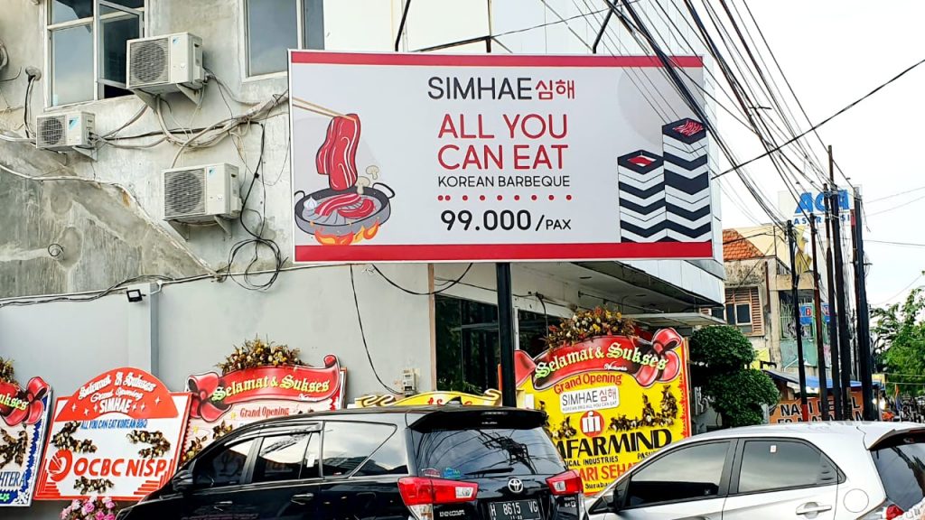 Berikut Pembuatan Media Iklan Signboard Resto “SIMHAE” di Semarang. Desain yang simple membuat tampilan resto/tempat usaha anda menjadi menarik dan membantu memberikan informasi berkaitan usaha anda.