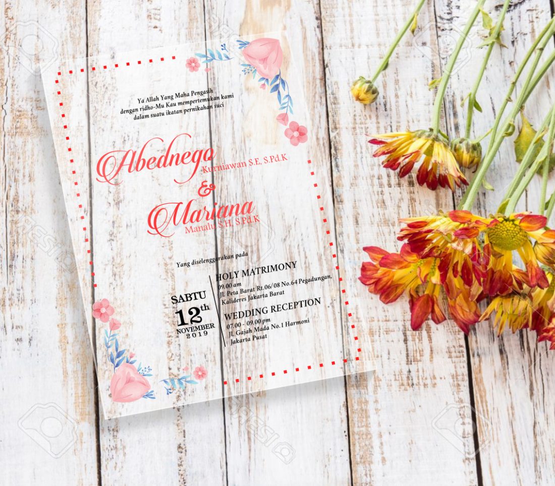 | Kegunaaan Produk | : | Undangan pernikahan yang dibuat dengan metode printing UV flatbet, untuk mengundang tamu dalam acara pernikahan |